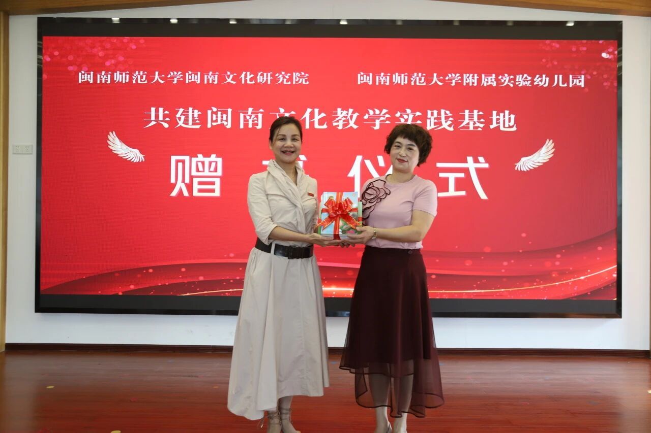 闽南文化研究院刘云院长和附属实验幼儿园园长共同为“闽南师范大学闽南文化教学实践基地”揭牌。