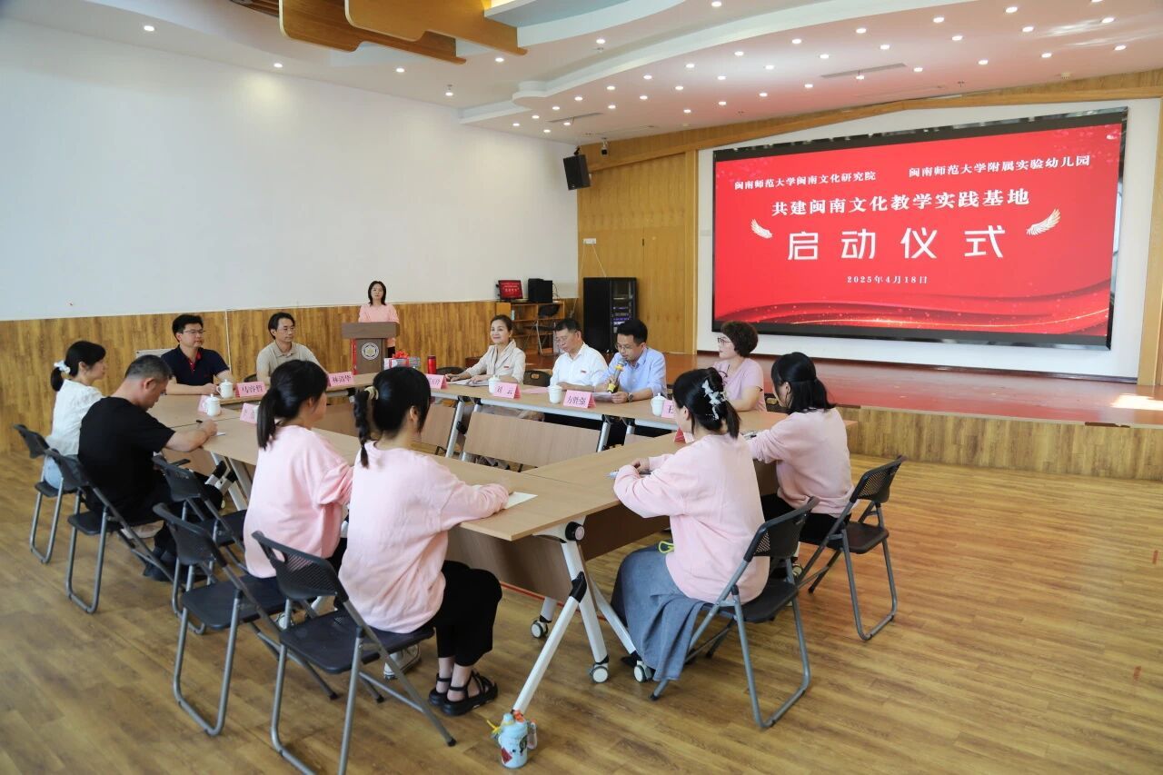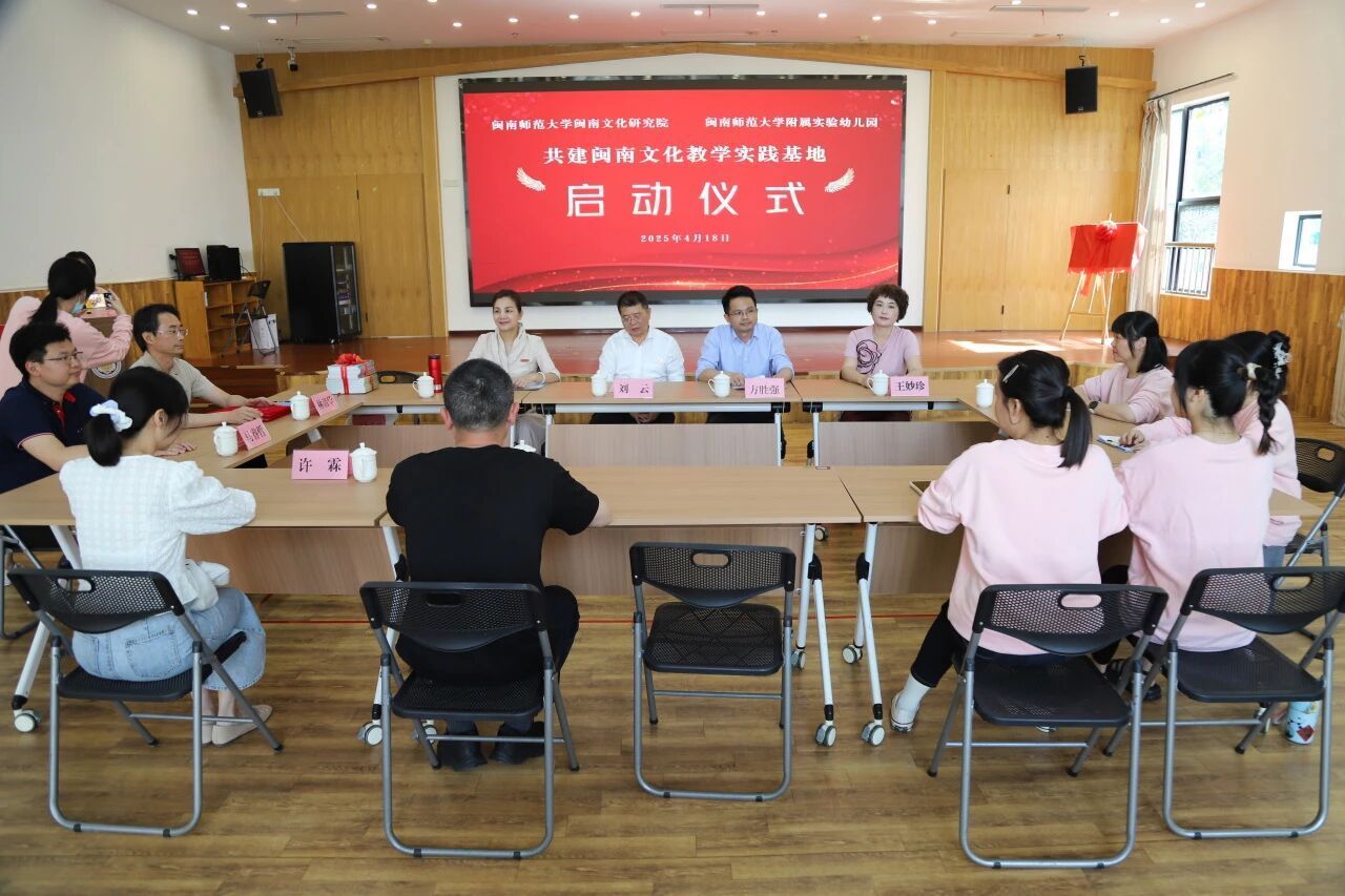 2025年4月18 日下午,闽南师范大学闽南文化研究院与附属实验幼儿园共建“闽南师范大学闽南文化教学实践基地”启动仪式在闽南师范大学附属实验幼儿园举行。后勤管理处处长方胜强、闽南文化研究院院长刘云、副院长郑玉玲等出席本次活动。